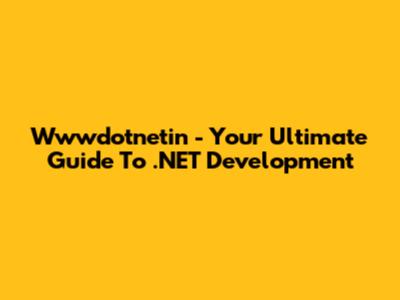 Wwwdotnetin - Your Ultimate Guide To .NET Development