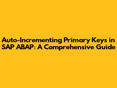Hey there, ABAP enthusiasts! Ever wondered how to automatically generate unique identifiers, like primary keys, in your SAP ABAP applications? Well, you're in the right place! We're diving deep into the world of auto-incrementing primary keys in SAP ABAP, exploring the different approaches, and providing you with the knowledge to implement them effectively. Let's get started, guys!