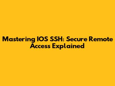 Mastering IOS SSH: Secure Remote Access Explained