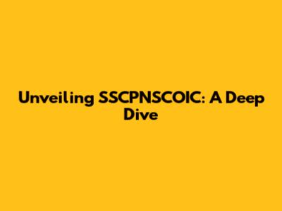 Unveiling SSCPNSCOIC: A Deep Dive