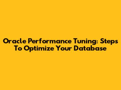 Oracle Performance Tuning: Steps To Optimize Your Database