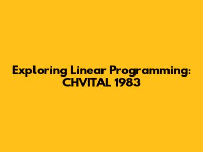 Exploring Linear Programming: CHVITAL 1983