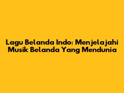 Lagu Belanda Indo: Menjelajahi Musik Belanda Yang Mendunia