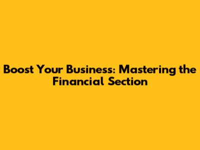 Why the Financial Section Matters Big Time
