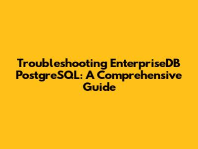 Troubleshooting EnterpriseDB PostgreSQL: A Comprehensive Guide