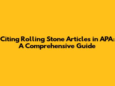 Hey guys! Ever stumbled upon a killer Rolling Stone article and thought, "Wow, I need to use this for my paper!"? You're not alone! But then comes the tricky part: citing it correctly in APA format. Don't worry, I've got you covered. This guide will break down everything you need to know about citing Rolling Stone articles in APA, from the basics to some of the trickier scenarios. Let's dive in and make sure your citations are on point!