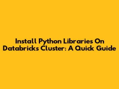 Install Python Libraries On Databricks Cluster: A Quick Guide