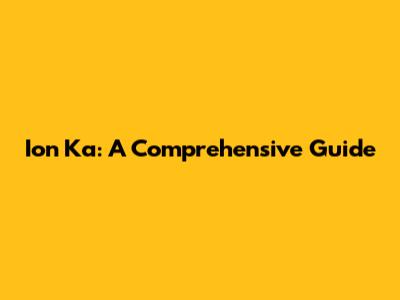 Ion Ka: A Comprehensive Guide