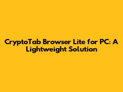 Hey guys! Are you looking for a web browser that won't hog your computer's resources while still letting you mine Bitcoin? Well, look no further! The CryptoTab Browser Lite for PC might just be what you need. This lightweight version of the popular CryptoTab Browser is designed to be easy on your system, ensuring smooth browsing and efficient mining. Let's dive into why this could be a game-changer for you.