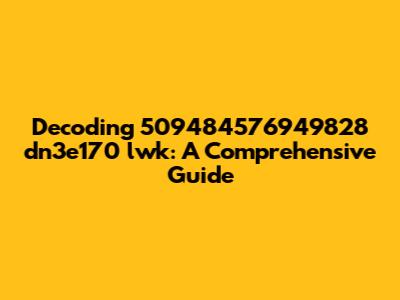 Alright, folks! Let's dive into the mysterious world of "509484576949828 dn3e170 lwk." What exactly is this seemingly random string of characters and numbers? Well, buckle up, because we're about to break it down. It might seem like gibberish at first glance, but trust me, there's likely a method to this madness. We'll explore all the potential meanings and origins, so you can understand what you're looking at and what it might be used for. Whether it's a product code, a serial number, or some kind of identifier, we're going to uncover its secrets. So, let's get started and unravel the enigma of "509484576949828 dn3e170 lwk" together!