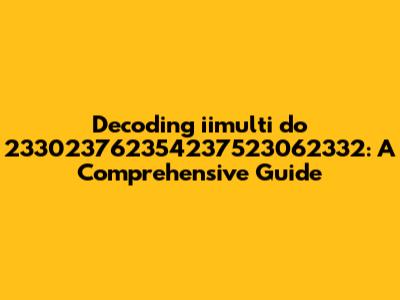 Hey guys! Ever stumble upon something that just seems like a jumble of numbers and letters, and you're left scratching your head? Well, that's exactly what we're going to tackle today with iimulti do 233023762354237523062332. Don't worry, it's not as scary as it looks. We're going to break it down, understand what it might be, and explore its potential significance. This guide is all about demystifying this string, providing you with a clearer picture of what it could represent and how you might approach it. Let's dive in and see what we can uncover together. Remember, the journey of understanding is always the most rewarding part, so let’s get started. We'll be using a mix of investigative techniques, analytical thinking, and a bit of good ol' common sense to decode this seemingly cryptic sequence. Buckle up, because it’s going to be a fun ride!