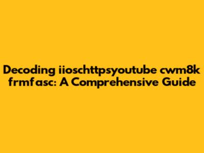 Hey guys! Ever stumbled upon a cryptic string like "iioschttpsyoutube cwm8k frmfasc" and wondered what in the world it meant? Well, you're not alone! These types of enigmatic codes often pop up when dealing with URLs, especially when trying to share or embed content from platforms like YouTube. In this article, we're going to break down this specific string, understand its components, and explore why it looks the way it does. Buckle up, because we're diving deep into the world of URL structures and online video sharing! Let's make it super clear right from the start: understanding these codes is crucial for anyone involved in content creation, digital marketing, or even just sharing funny cat videos with your friends. You see, knowing how URLs work under the hood allows you to troubleshoot issues, optimize your content's visibility, and generally be more savvy in the digital landscape. Now, let's dissect this particular string bit by bit. First off, you might notice the "https" part. This indicates a secure connection, meaning the data transferred between your browser and the server is encrypted, keeping your information safe. The presence of "youtube" should immediately tip you off that we're dealing with something related to the popular video-sharing platform. But what about the rest of it? The seemingly random characters "cwm8k" and "frmfasc" are actually part of YouTube's unique video identifier. Each video uploaded to YouTube gets assigned a specific ID, and these IDs are used to locate and play the correct video. These IDs are typically base64 encoded, which is a way of representing binary data in an ASCII string format. This encoding ensures that the ID can be safely transmitted over the internet without being misinterpreted by different systems. So, in essence, "iioschttpsyoutube cwm8k frmfasc" is likely a snippet of a URL that points to a specific YouTube video. It might be a shortened or modified version of the full URL, but it contains enough information for the platform to identify and serve the correct content. Understanding this helps you appreciate the complex infrastructure that powers online video sharing and allows you to navigate the digital world with a bit more confidence!