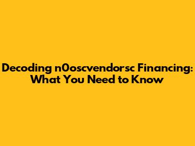 Hey guys! Ever stumbled upon the term "n0oscvendorsc financing" and scratched your head? Don't sweat it; you're not alone. It's a bit of a mouthful, but understanding what it means can be super important, especially if you're involved in, or thinking about getting involved in, vendor financing. This article is your friendly guide to breaking down this term. We'll explore its meaning, how it works, and why it matters in the grand scheme of things. So, grab a coffee, and let's dive in! We are going to explore this financial term with all the basics. Let's get to the bottom of the meaning, shall we?