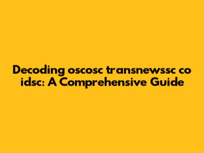 Hey there, fellow web wanderers! Ever stumbled upon "oscosc transnewssc co idsc" and scratched your head? You're not alone! It's a bit of a mouthful, right? Well, buckle up, because we're about to dive deep and unravel what this cryptic string is all about. This isn't just a random collection of letters; it's a doorway to understanding a specific corner of the internet. Let's get started, shall we? We'll break it down piece by piece, so by the end, you'll be able to decode it like a pro. Think of this as your ultimate guide to understanding this digital puzzle. Ready to begin our journey? Then, let's explore oscosc transnewssc co idsc, and make sure you are in the right place.