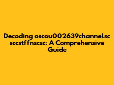 Hey guys! Ever stumbled upon something online that just looks like a jumble of letters and numbers and thought, "What on earth is that?" Well, today we're diving deep into one of those mysterious strings: oscou002639channelsc sccstffnscsc. It might seem like gibberish at first glance, but trust me, there's usually more than meets the eye. In this article, we'll break down what this could possibly mean, explore its potential origins, and give you some insights into how to handle such enigmatic codes.
