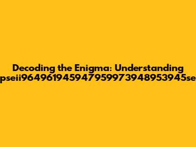 Hey guys! Ever stumbled upon a seemingly random string of characters and wondered what on earth it could mean? Today, we're diving deep into one such enigma: 'pseii964961945947959973948953945se'. This isn't your everyday keyword, and that's precisely what makes it so interesting. In this article, we're going to break down what this jumble of letters and numbers might signify, how it could have originated, and why understanding such seemingly random strings is more important than you might think. Let's get started on this journey of digital decoding!