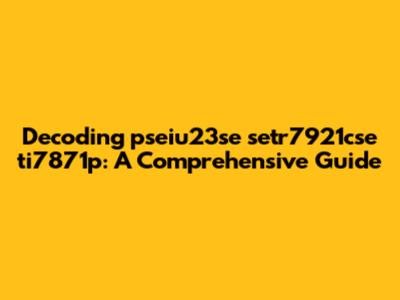Alright, guys, let's dive into the mysterious world of "pseiu23se setr7921cse ti7871p." Now, I know what you're thinking – what on earth is that? Well, sometimes we stumble upon these alphanumeric strings, and they can represent anything from product codes to internal identifiers. The goal here is to break it down, understand its potential components, and figure out what it might signify. This isn't always straightforward, but with a bit of detective work, we can often make some educated guesses.