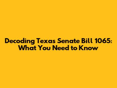 Hey everyone! Today, we're diving deep into Texas Senate Bill 1065, a piece of legislation that's been making waves in the Lone Star State. If you're scratching your head wondering what all the fuss is about, you're in the right place. We'll break down the bill's key aspects, its potential impacts, and why it matters to you. So, buckle up, grab your favorite beverage, and let's get started. We'll explore the nitty-gritty details, so you can sound like a total expert when discussing it with your friends and family. This isn't just about reading a bill; it's about understanding how it affects the everyday lives of Texans, and understanding the core of the bill, so you can form your own opinion and participate in informed discussions. Are you ready to get started?