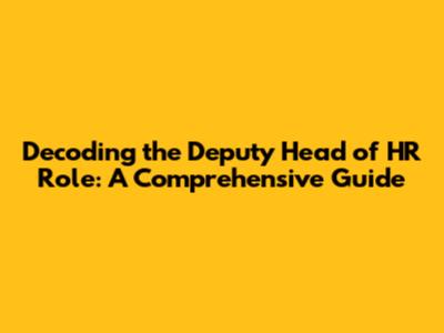 Hey there, future HR gurus! Ever wondered what it truly takes to be a Deputy Head of Human Resources? Well, buckle up, because we're diving deep into the nitty-gritty of this awesome role. The Deputy Head of HR is like the right-hand person, the second-in-command, the go-to expert who supports the Head of HR in all things people-related. It's a role that demands a blend of strategic thinking, hands-on execution, and a genuine passion for cultivating a thriving workplace. In this comprehensive guide, we'll unpack the key responsibilities, the required skills, and the career path that leads to this exciting position. We'll explore how the Deputy Head of Human Resources works, the challenges they face, and the rewards they reap. So, whether you're an aspiring HR professional or simply curious about this dynamic field, this article is your ultimate resource. The Deputy Head of Human Resources acts as the primary support system, ensuring that everything runs smoothly. From developing HR policies to managing employee relations and driving organizational change, the Deputy Head plays a vital role in shaping the company culture and supporting business objectives. So, if you're ready to learn about the Deputy Head of Human Resources duties, responsibilities, and the path to becoming one, read on, guys!