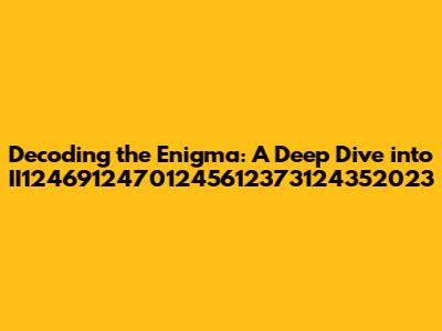 Hey guys, let's embark on a fascinating journey to decode the mystery behind the seemingly random sequence: II12469124701245612373124352023. At first glance, it might look like a jumble of numbers, a secret code, or even a typo. However, as we peel back the layers, we'll explore various possibilities, examining different perspectives, and employing logical reasoning to unravel its potential meaning. This deep dive aims to provide a comprehensive analysis, leaving no stone unturned in our quest for understanding. We'll start by breaking down the sequence, searching for patterns, and considering diverse interpretations. This is not just about identifying the number; it's about the process of investigation, the thrill of discovery, and the power of analysis. Whether this sequence is a date, an identification number, a mathematical construct, or something entirely unique, our mission is to explore every avenue.