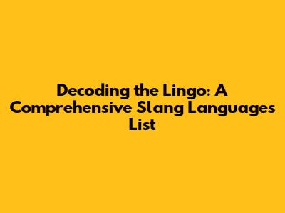 Hey there, language enthusiasts and curious minds! Ever felt like you're lost in translation, even when you're speaking the same language? Well, you're not alone! The world of slang is a vibrant, ever-changing landscape, and it can be a real head-scratcher to keep up. But don't worry, we're diving deep into the fascinating world of slang languages, giving you a comprehensive list to help you decode the lingo and maybe even sprinkle some into your own conversations. Whether you're a seasoned traveler, a student of linguistics, or just someone who loves a good word, this guide is for you. Get ready to explore the quirky, creative, and sometimes baffling world of slang! Let's get started, shall we?