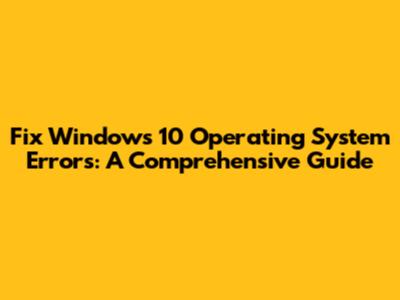 Fix Windows 10 Operating System Errors: A Comprehensive Guide