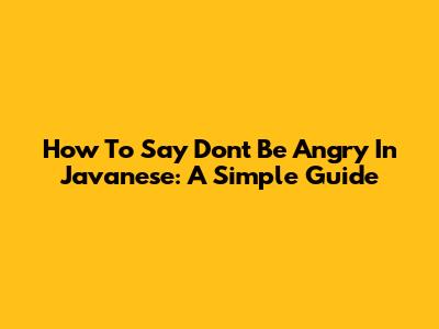 How To Say Don't Be Angry In Javanese: A Simple Guide