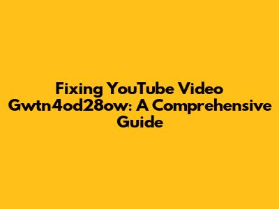 Fixing YouTube Video Gwtn4od28ow: A Comprehensive Guide