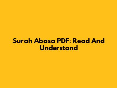 Surah Abasa PDF: Read And Understand