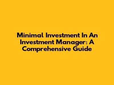 Minimal Investment In An Investment Manager: A Comprehensive Guide