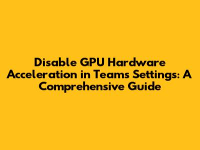 Disable GPU Hardware Acceleration in Teams Settings: A Comprehensive Guide
