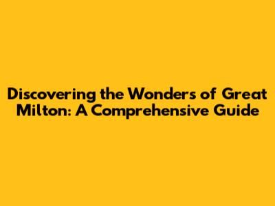 Hey everyone! Today, we're diving deep into the charming village of Great Milton. I will show you everything that makes this place so special. This guide is your ultimate companion to exploring the history, beauty, and hidden gems of Great Milton. So, buckle up, and let's embark on this exciting journey together. Great Milton, nestled in the heart of Oxfordshire, England, is a quintessential English village, brimming with history, character, and natural beauty. It’s a place where the past and present intertwine seamlessly, offering visitors a unique and unforgettable experience. From its picturesque architecture to its vibrant community, Great Milton has something to captivate every traveler. Whether you're a history buff, a nature lover, a foodie, or simply seeking a peaceful escape, Great Milton will not disappoint. Get ready to explore this charming village. Its winding lanes, historic buildings, and welcoming atmosphere will surely leave you enchanted. The village’s serene environment offers a refreshing break from the hustle and bustle of city life, providing a perfect setting for relaxation and exploration. Great Milton is more than just a destination; it's an experience. It's a journey through time, a celebration of community, and a testament to the enduring beauty of the English countryside. Throughout this guide, we'll uncover the village's rich history, explore its notable landmarks, and discover the local treasures that make it a truly special place. So, let's get started and uncover the magic of Great Milton together!