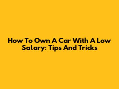 How To Own A Car With A Low Salary: Tips And Tricks