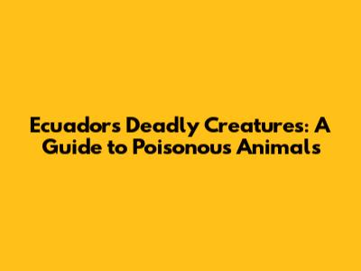 Poisonous Creatures of Ecuador: The