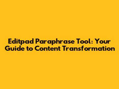 Hey guys! Ever feel like you're stuck in a content rut? You've got ideas, you've got the words, but something's just not clicking? That's where the Editpad Paraphrase Tool swoops in to save the day! This nifty tool is a game-changer for anyone looking to revamp their writing, whether you're a student, a blogger, or a seasoned professional. Let's dive deep and explore how this amazing tool can help you transform your writing and boost your content creation game! We're going to explore what the Editpad Paraphrase Tool is, its cool features, how to use it, and why it's a must-have in your writing arsenal.