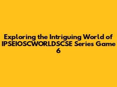 Conclusion: Why You Should Play IPSEIOSCWORLDSCSE Series Game 6