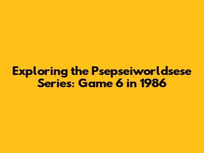 Hey guys, let's dive into the fascinating world of the Psepseiworldsese series! Today, we're taking a closer look at Game 6 from the year 1986. This game holds a special place in the hearts of many, and for good reason. It was a time when gaming was evolving, and this particular title made some waves. We'll explore what made this game unique, what the gameplay was like, and the impact it had on the gaming community back then. Get ready to journey back in time and uncover the secrets of Psepseiworldsese Series Game 6!