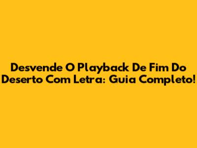 Desvende O Playback De 'Fim Do Deserto' Com Letra: Guia Completo!