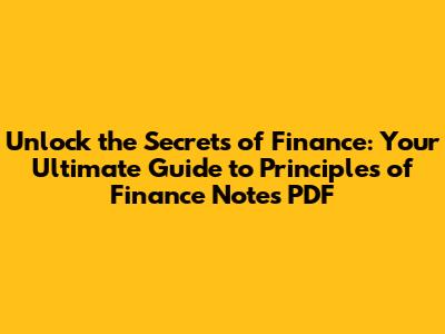 Why Principles of Finance Notes PDF Are Your New Best Friend