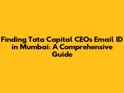 Hey guys! So, you're looking for the Tata Capital CEO's email ID in Mumbai, huh? Well, you've come to the right place! Finding the direct contact information for a CEO can sometimes feel like searching for a needle in a haystack, but don't worry, I'm here to guide you through the process. Whether you're a potential investor, a customer with a serious issue, or just someone who wants to reach out, knowing how to find the right email address is super important. In this article, we'll dive deep into the methods you can use to unearth that coveted email address. We'll explore various strategies, from leveraging online resources to understanding the nuances of corporate email structures. Let's get started, shall we?
