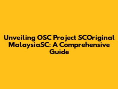 Unveiling OSC Project SCOriginal MalaysiaSC: A Comprehensive Guide