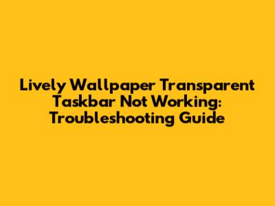 Hey guys! Having trouble with Lively Wallpaper and your transparent taskbar? It's a bummer when your cool customizations don't work as expected. Let's dive into some common issues and fixes to get your desktop looking awesome again. This comprehensive guide will walk you through various troubleshooting steps to resolve the problem of a non-transparent taskbar when using Lively Wallpaper. We'll cover everything from basic checks to more advanced solutions, ensuring that you can enjoy the seamless integration of animated wallpapers and a visually appealing taskbar. So, buckle up and let’s get started!