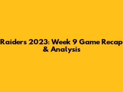 Raiders 2023: Week 9 Game Recap & Analysis