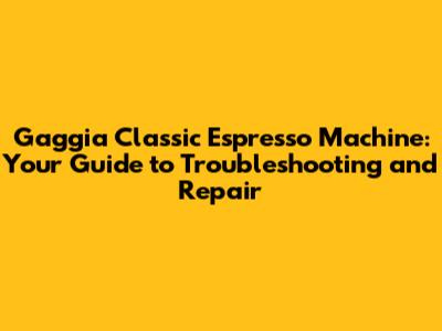 Troubleshooting Your Gaggia Classic: A Step-by-Step Guide
