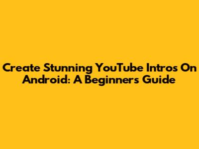 Create Stunning YouTube Intros On Android: A Beginner's Guide
