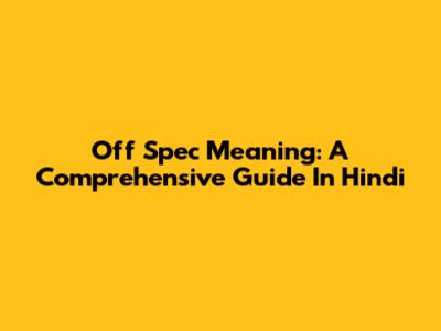 Off Spec Meaning: A Comprehensive Guide In Hindi