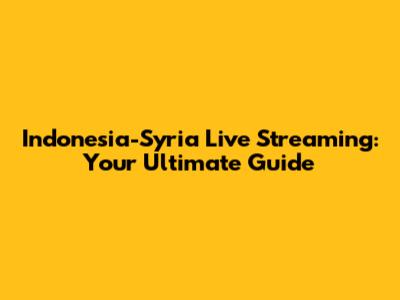 Indonesia-Syria Live Streaming: Your Ultimate Guide