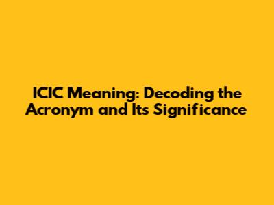 Unveiling the Mystery: The Full Form of ICIC
