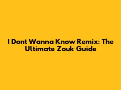I Don't Wanna Know Remix: The Ultimate Zouk Guide