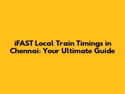Hey guys! Planning to navigate the bustling city of Chennai using the local trains? Awesome choice! Chennai's suburban railway network is a lifesaver, especially when you're trying to dodge the crazy traffic. But let's be real, figuring out the iFAST local train timings can sometimes feel like solving a puzzle. Don't worry, I've got your back! This guide is here to give you all the deets you need to travel like a pro. We'll cover everything from understanding the iFAST system to finding the most up-to-date schedules. So, grab a cup of coffee (or your favorite filter coffee, Chennai style!) and let's dive in!